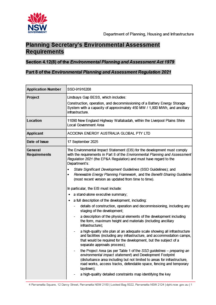 In August, we submitted our Scoping Report for the proposed Project to the NSW Government Department of Planning, Housing and Infrastructure (the Department).