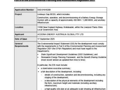 In response to the submission of the Scoping Report, the Department has issued the Planning Secretary’s Environmental Assessment Requirements for the project, also known as SEARs.