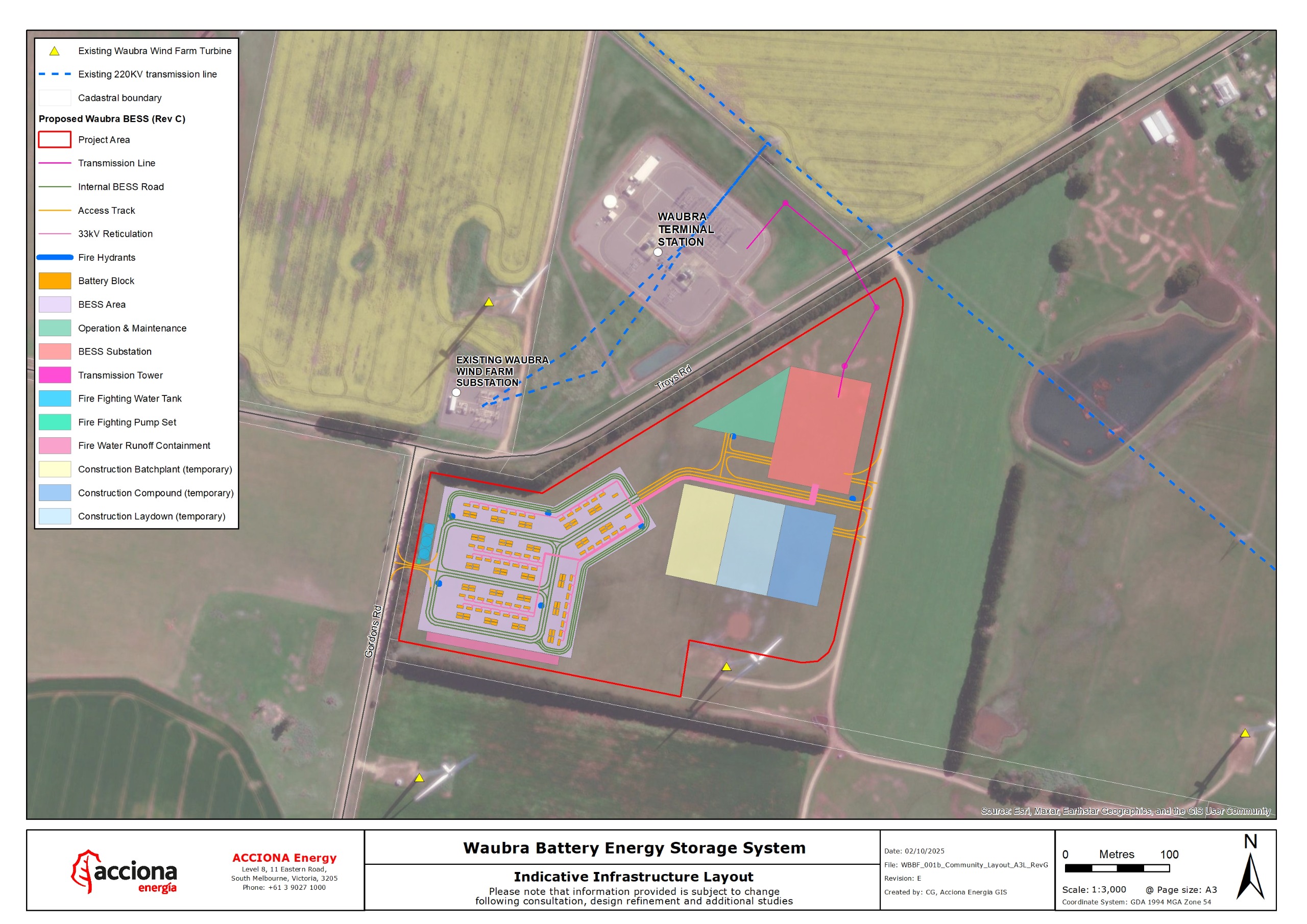 ACCIONA Energia is proposing the development and construction of a Battery Energy Storage System (BESS) in the Western Victoria area of Waubra. The proposed Waubra BESS is located on land that is part of the existing operational Waubra Wind Farm and adjacent to the Waubra Terminal Station.